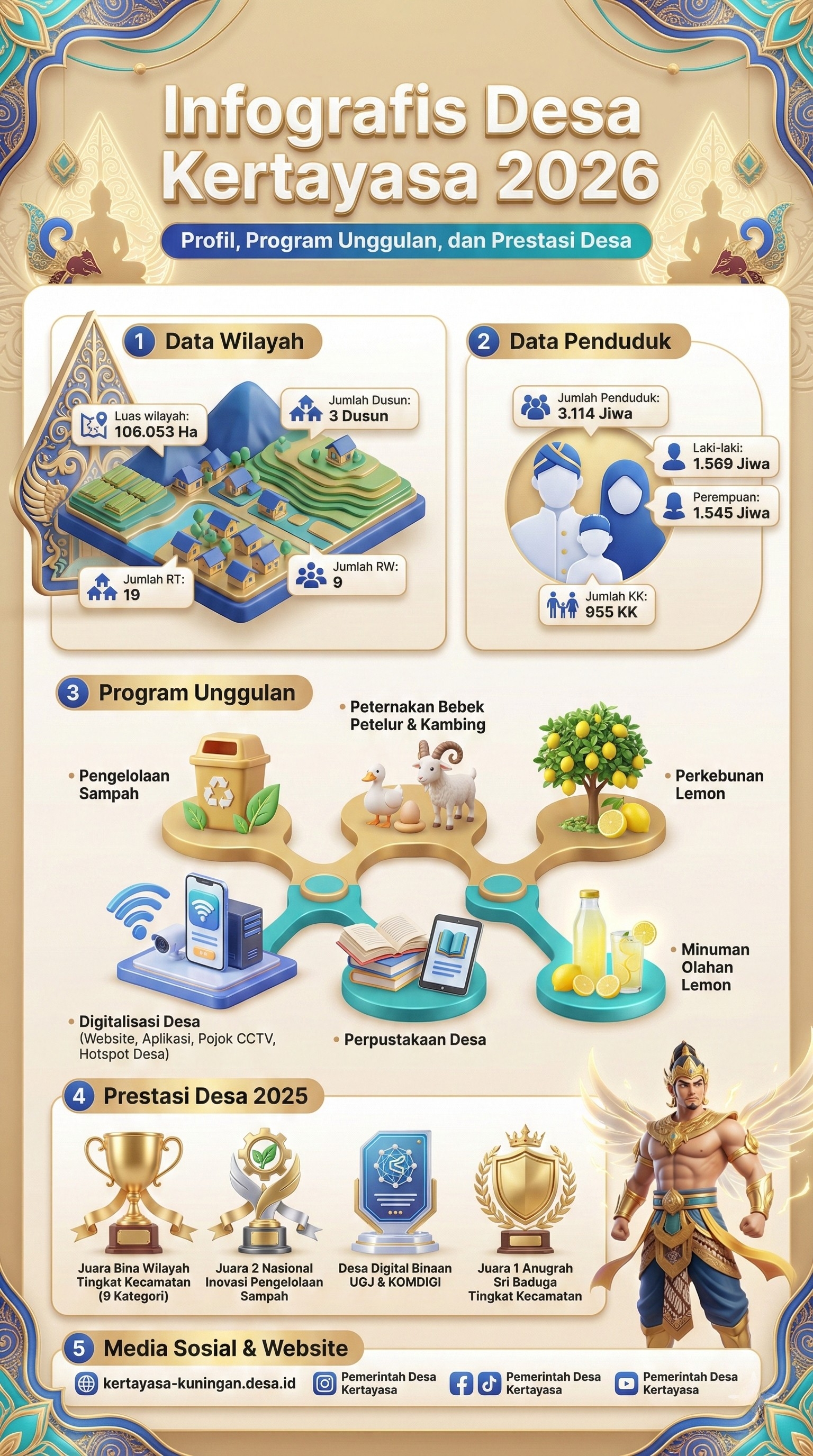 Desa Kertayasa kembali menorehkan prestasi membanggakan di tingkat nasional. Pada ajang Penganugerahan Lomba Desa Inovasi Sampah Nusantara Tahun 2025, Desa Kertayasa berhasil meraih Juara II terba ..... Baca Selengkapnya